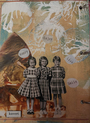 Tein tämän Art Journalin taustat maalaamalla ne akryylimaaleilla. Käytin päälle myös vähän kohokuviointia.